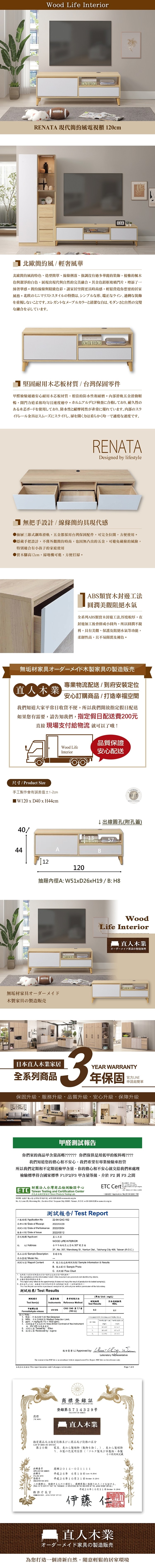 直人木業-LEO北歐風系統板桌面 121公分電視櫃