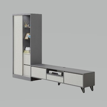 【歐風別館】查德9.2尺L型灰橡色仿石面電視櫃【工業風~基隆至台中免運費】