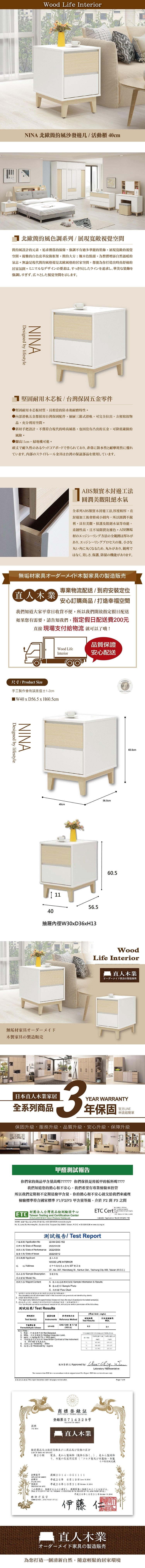直人木業-NINA北歐簡約風沙發邊几/活動櫃40公分