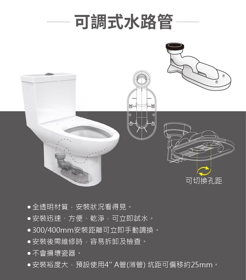 和成 單體馬桶 C4588MUT 可調管距馬桶排水管距30公分