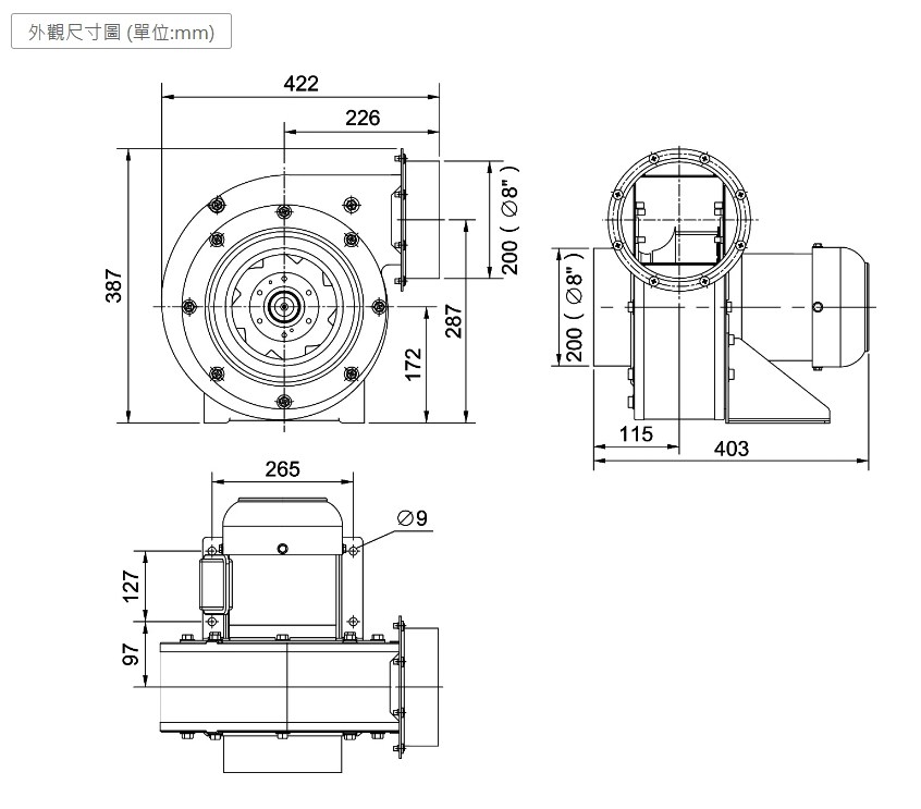 DF多翼式離心風機廚房管道排煙引風機工業除塵換氣排風機通風設備【DD1113001】