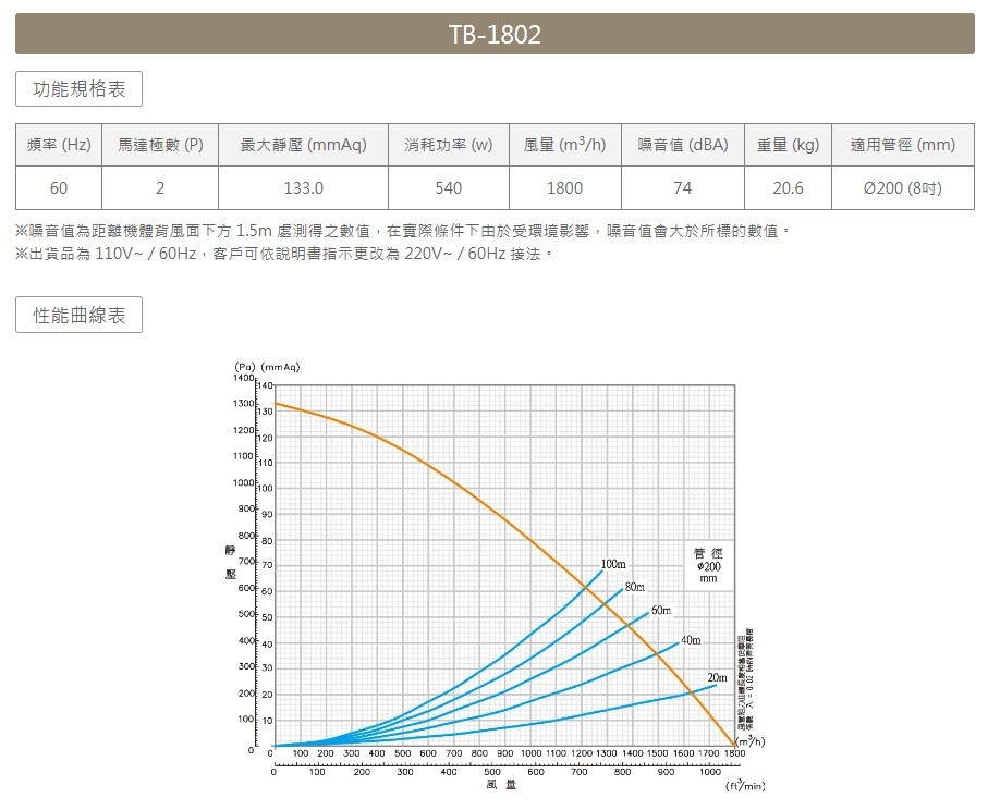【ALASKA阿拉斯加】高靜壓風機 TB-1802 110V 通風 排風 換氣