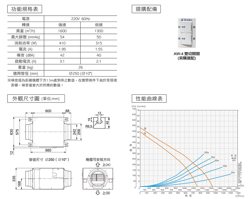 【ALASKA阿拉斯加】靜音型風機 VT-1604 220V 通風 隱形換氣 一機多房220V