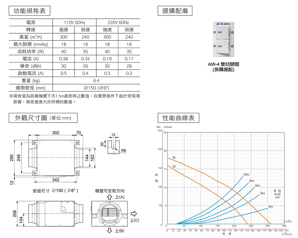 點我下載【ALASKA阿拉斯加】靜音型風機 VT-304 110V/220V 通風 隱形換氣 一機多房220V