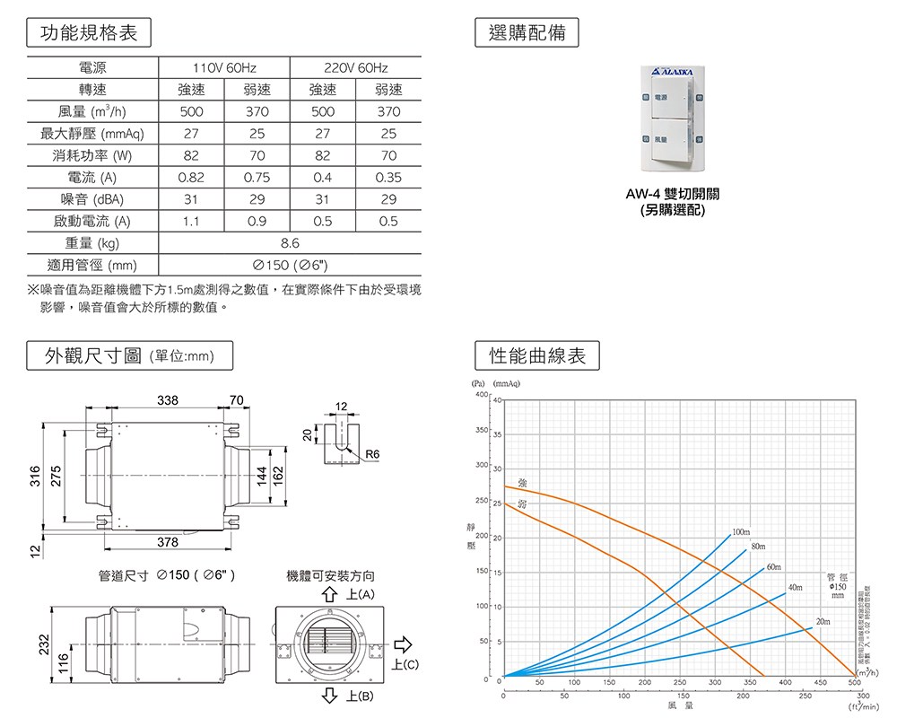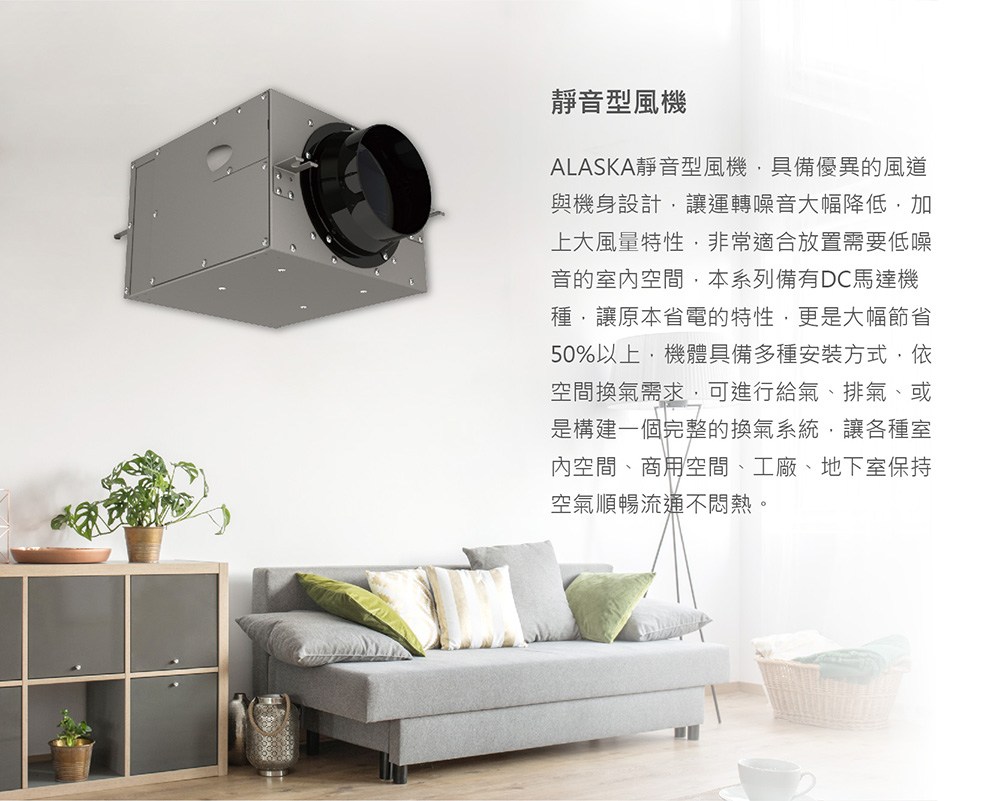 【ALASKA阿拉斯加】靜音型風機 VT-154 110V/220V 通風 隱形換氣 一機多房110V