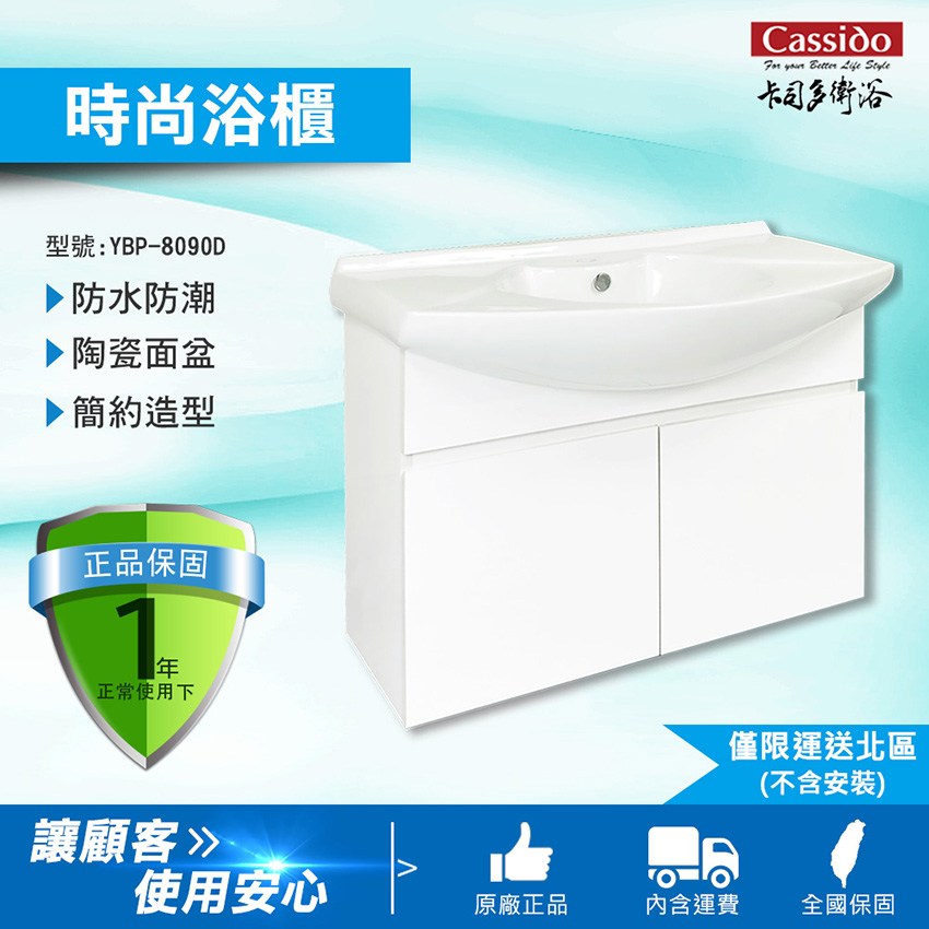 【CASSIDO】限量款結晶網烤防水時尚浴櫃YBP-8090D(寬53.5cm)