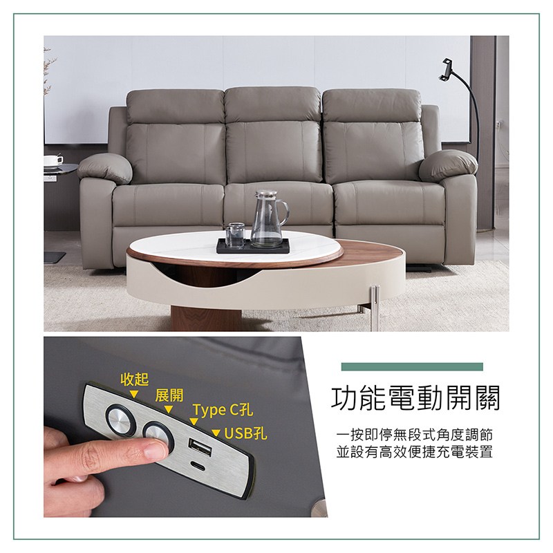 【雲悅】零靠牆三人電動沙發