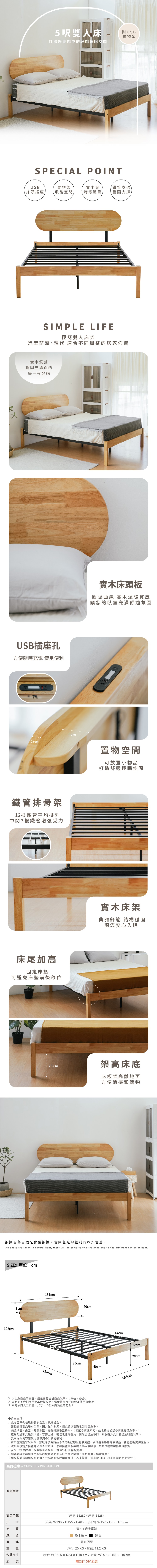 【RICHOME】 亞羅5呎雙人床原木色
