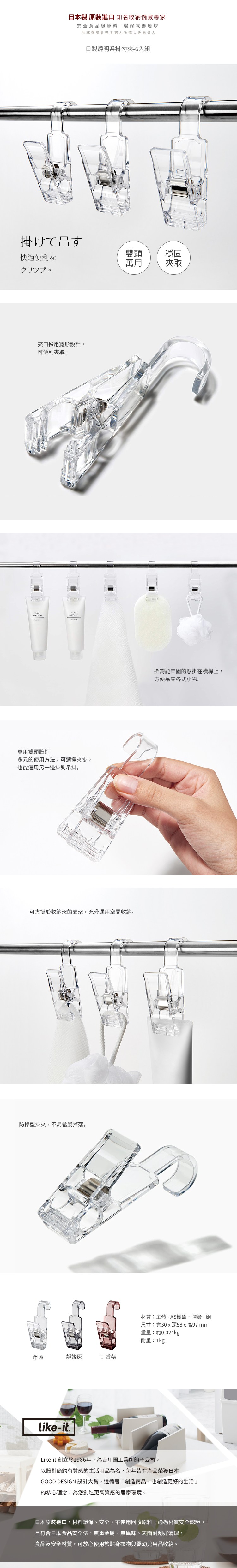 【日本like-it】日製透明系掛勾夾-6入組-多色可選-淨透