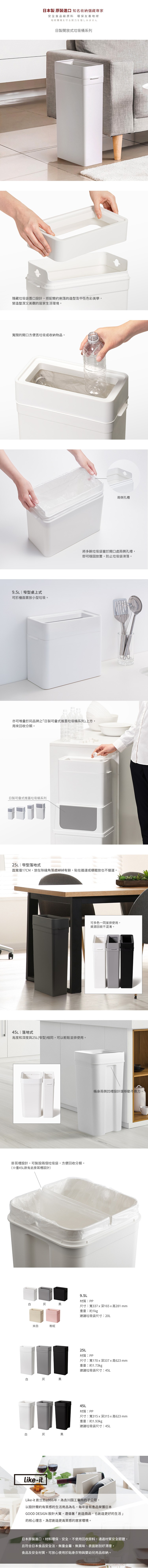 點我下載【日本like-it】日製窄型開放式落地垃圾桶-25L-多色可選-黑