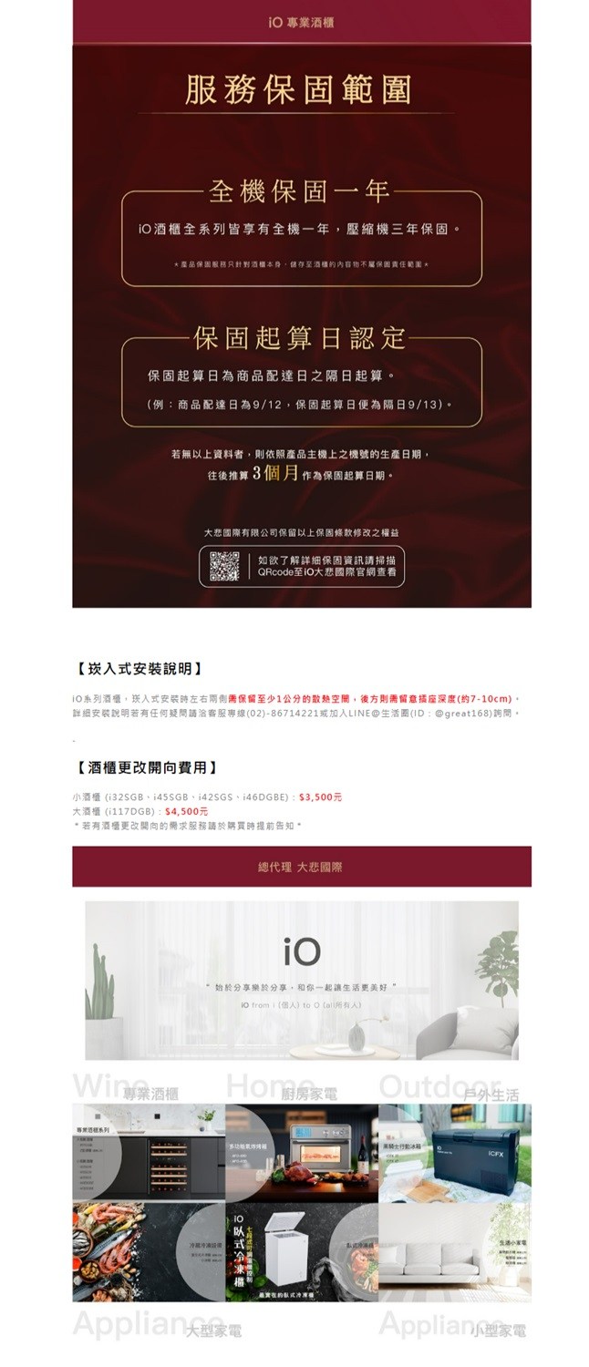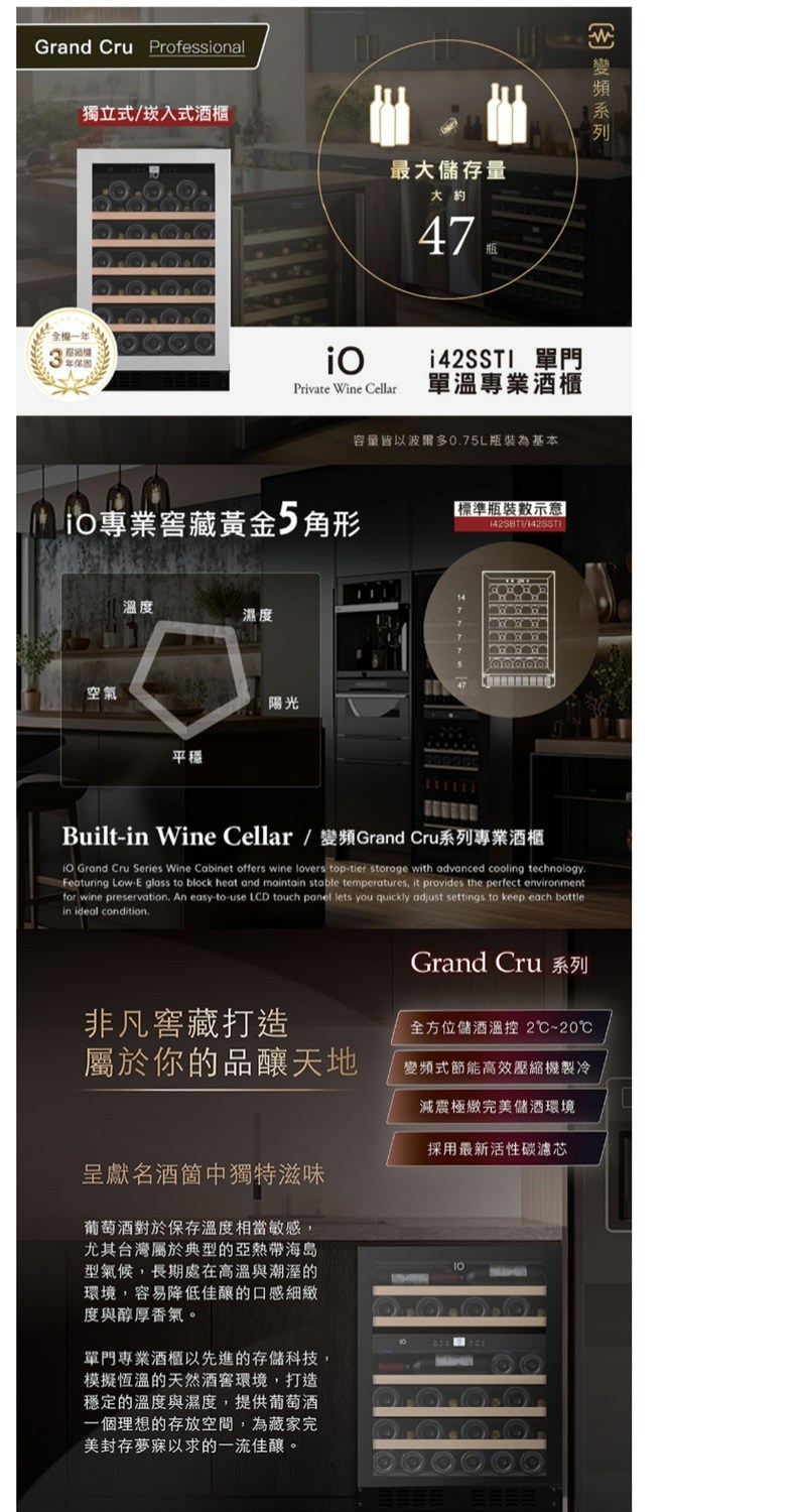 io Grand Cru變頻系列單門單溫酒櫃   i42SSTI