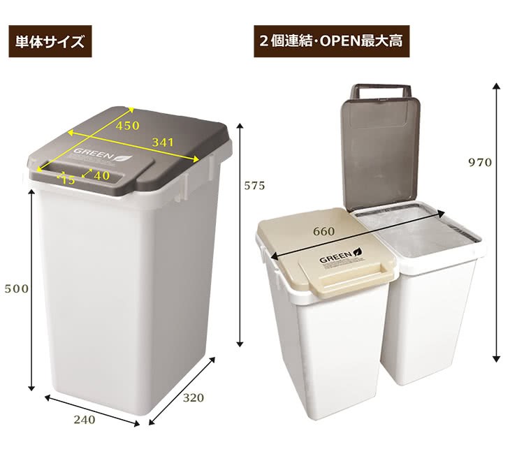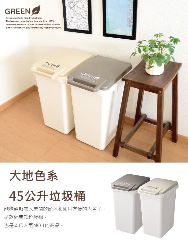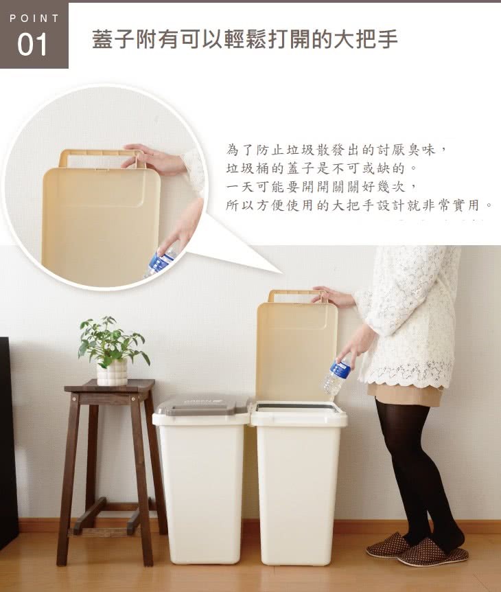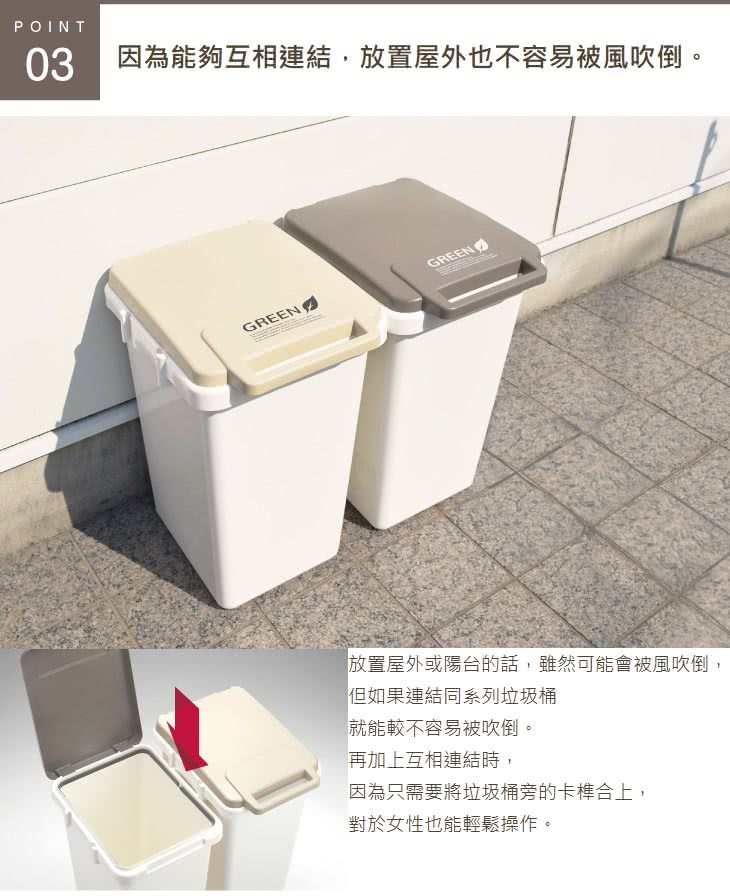 JOINT掀蓋連結垃圾桶 45L 米色