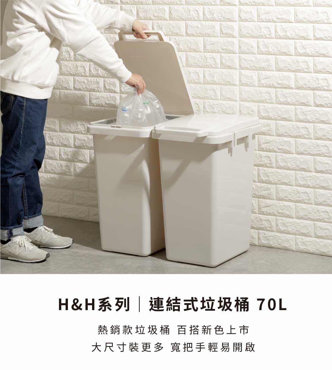 秘寶在這RISU H&H系列 連結式環保垃圾桶 70L灰白色