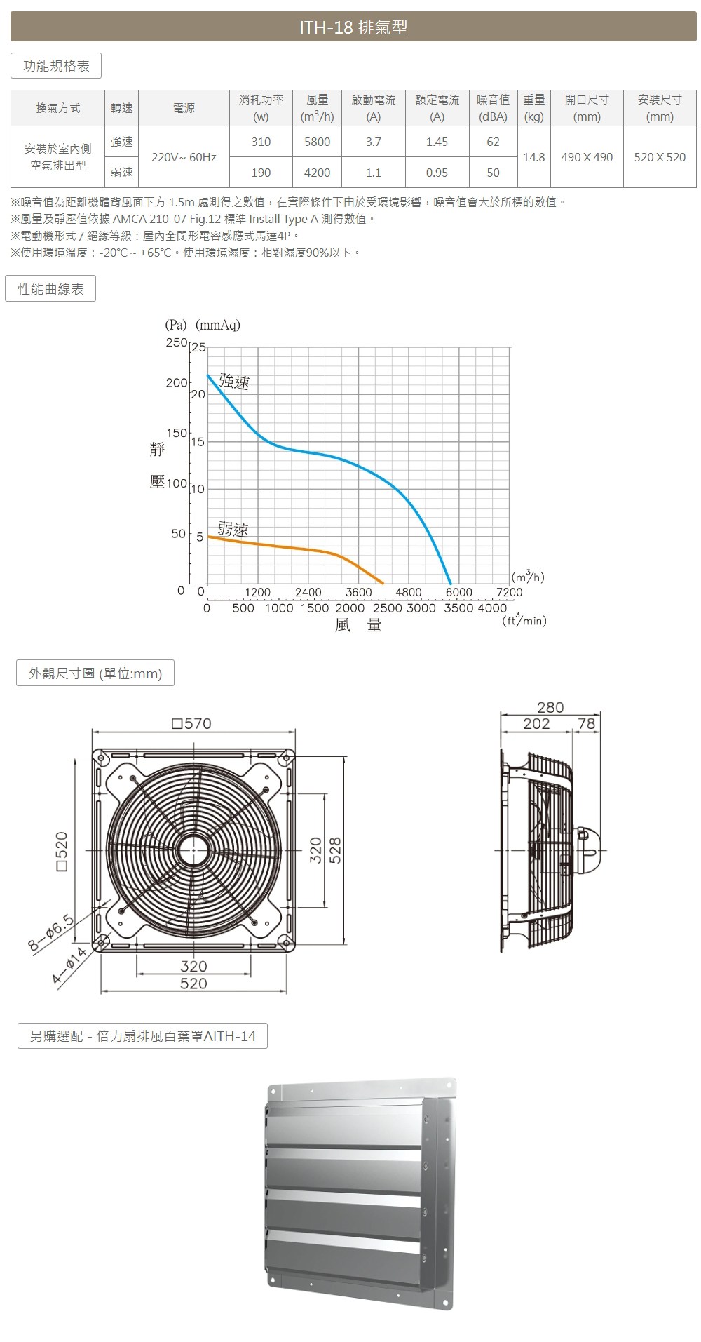 【ALASKA阿拉斯加】產業用倍力扇 ITH-18 (排氣型220V) 通風 排風 換氣 廠房 工業220V