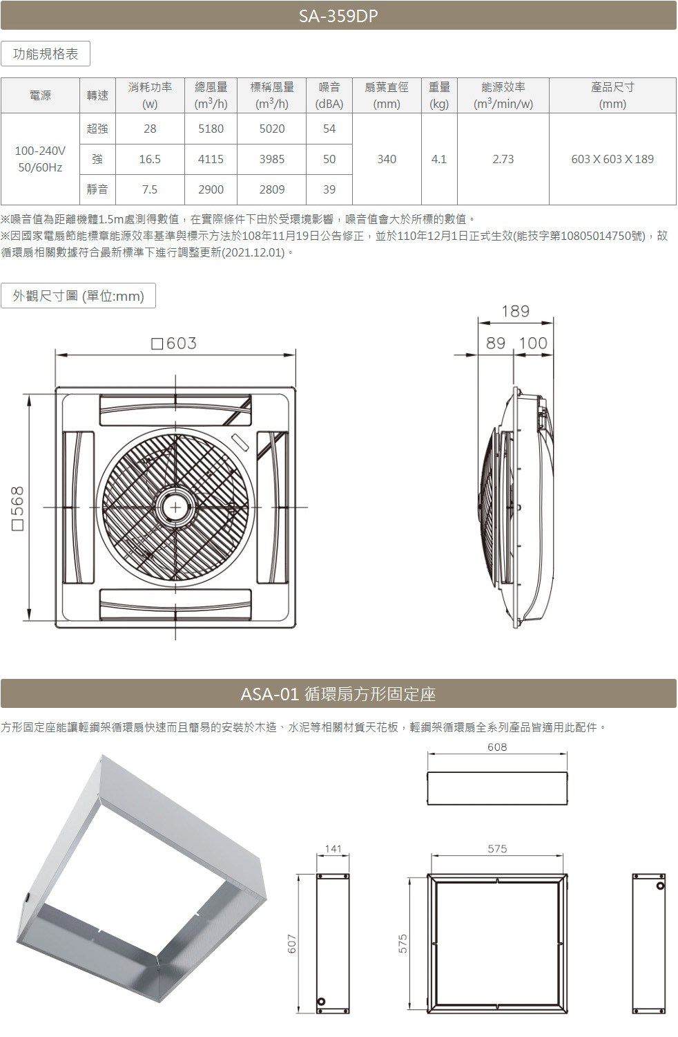 阿拉斯加 SA-359D輕鋼架節能循環扇(DC直流變頻)遙控款