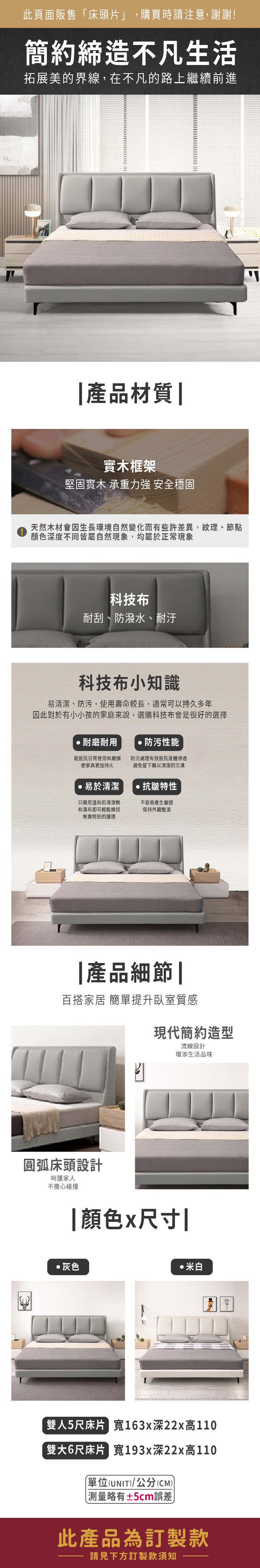 ASSARI-米蘭科技布床頭片-雙大6尺米白