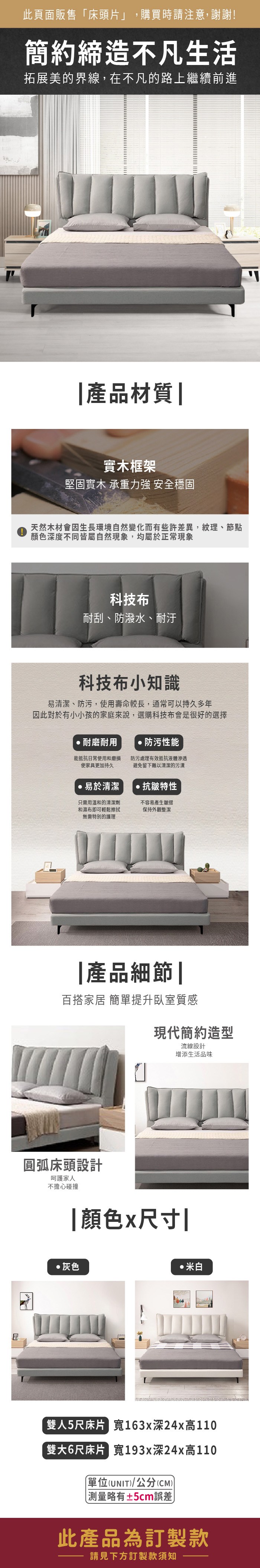 ASSARI-奧斯特科技布床頭片-雙大6尺米白
