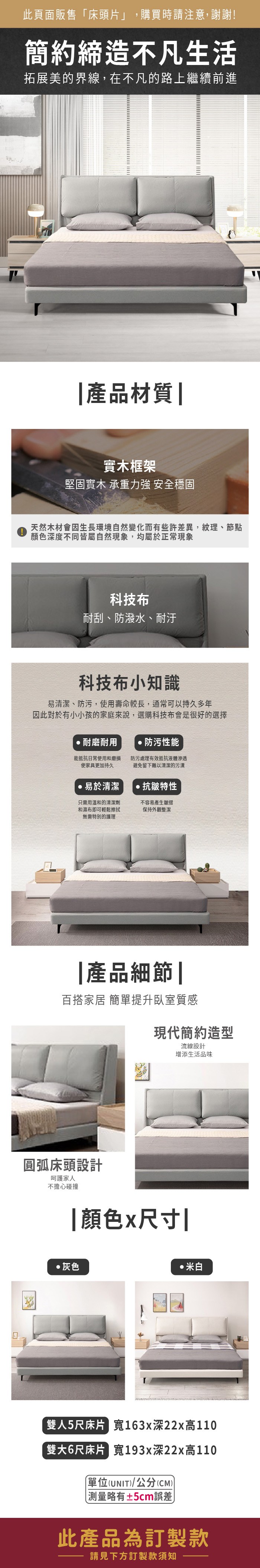 ASSARI-布拉格科技布床頭片-雙大6尺米白