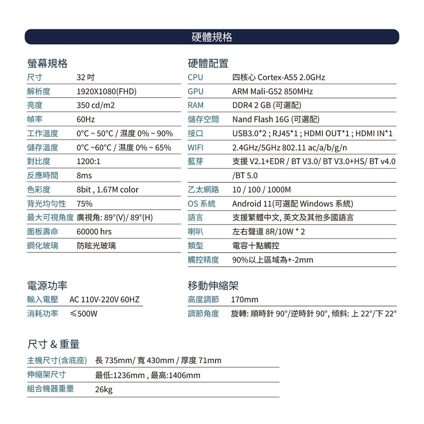 【注意事項】 1.產品保固期限:2年(天災、水災、地震等不可抗力之災害與人為疏忽不包含在內) ,若產品本身瑕疵或運送過程導致新品瑕疵,到貨7日內可更換新品。