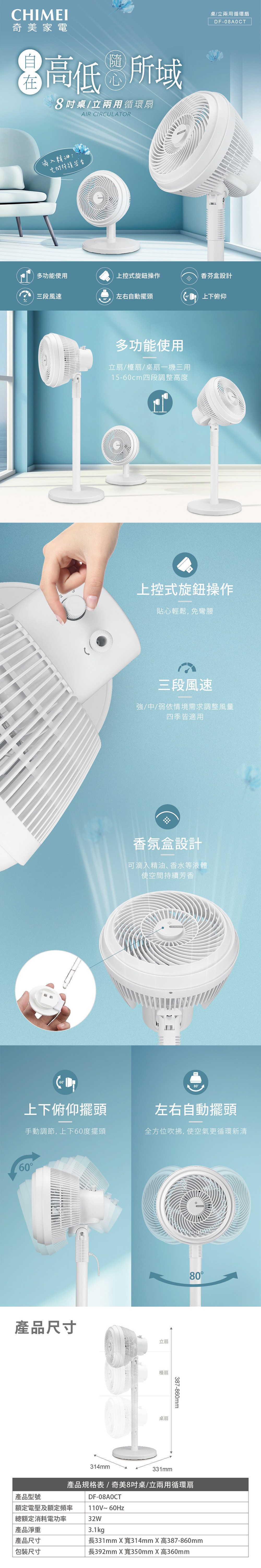 CHIMEI 8吋多功能香氛循環扇 DF-08A0CT