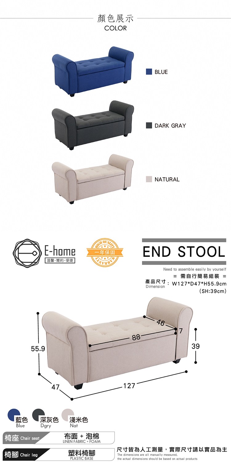 正常使用下,結構保固一年,立即添加到購物車,您將體驗此收納長凳功能性和舒適性!