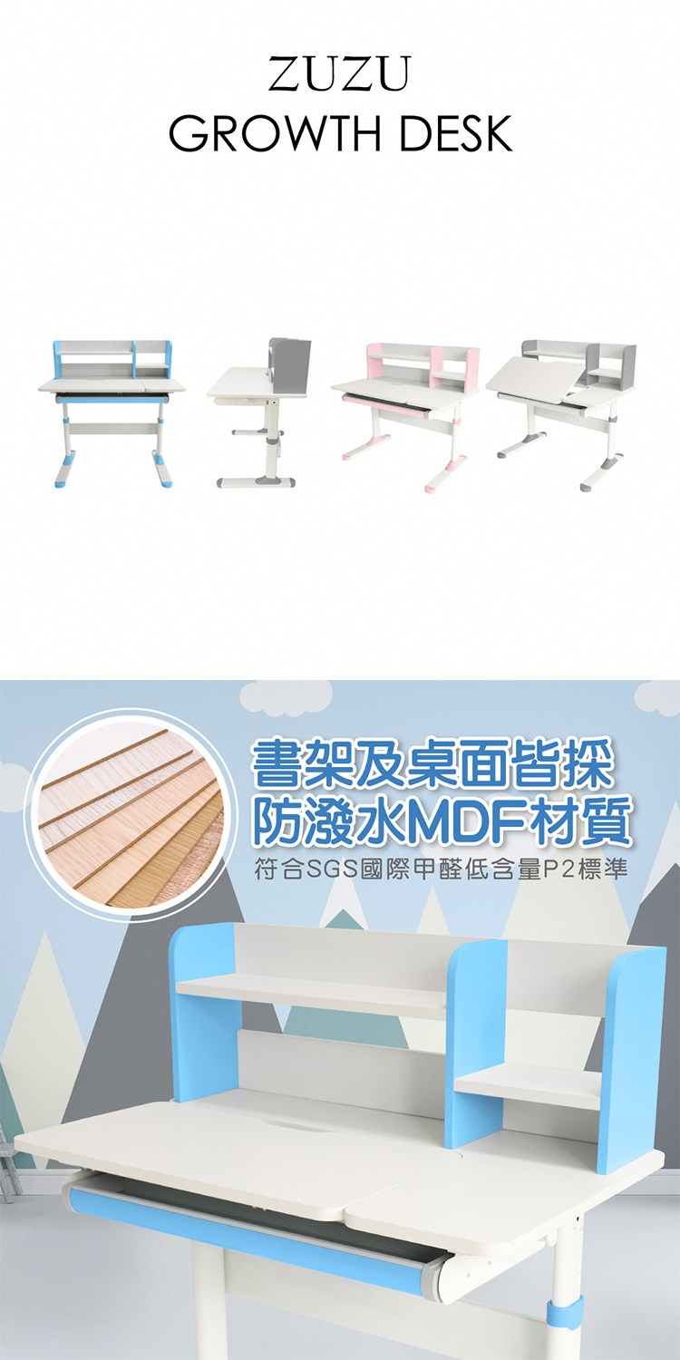 台灣與歐美同步販售、美規設計,書架及桌面皆採防潑水MDF材質,符合SGS國際甲醛低含量P2標準,