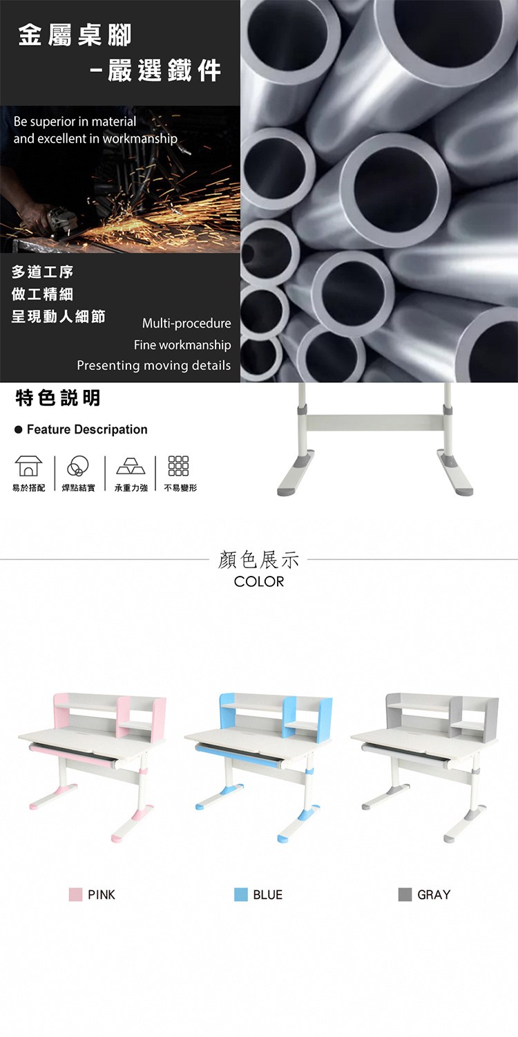 桌腳:金屬鐵件 + 塑料