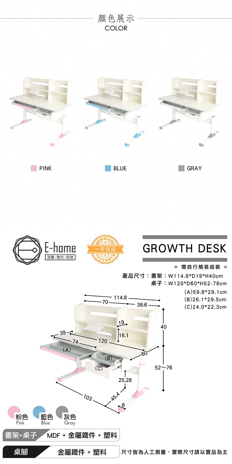 正常使用下,結構保固一年,立即添加到購物車,您將體驗此成長桌帶給您的生活變化!