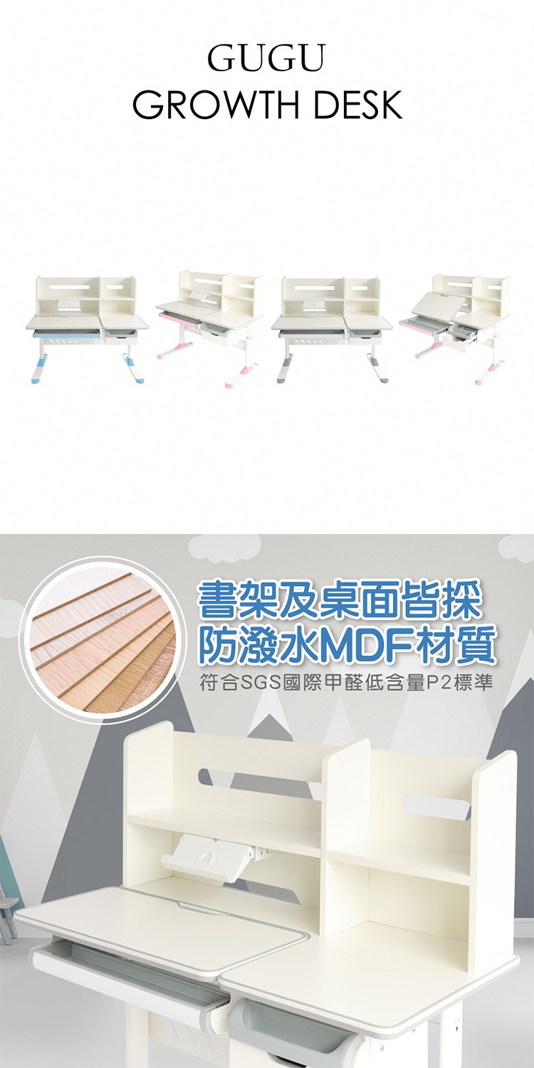 [E-home]GUGU古古多功能書架雙抽陪讀兒童升降成長桌-寬120cm,陪伴寶貝快樂成長的兒童成長桌,