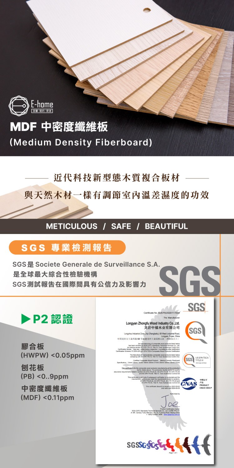 * 符合SGS國際甲醛低含量P2標準