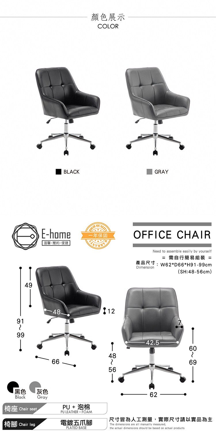 產品尺寸:W62*D66*H91-99 cm (SH:48-56 cm)