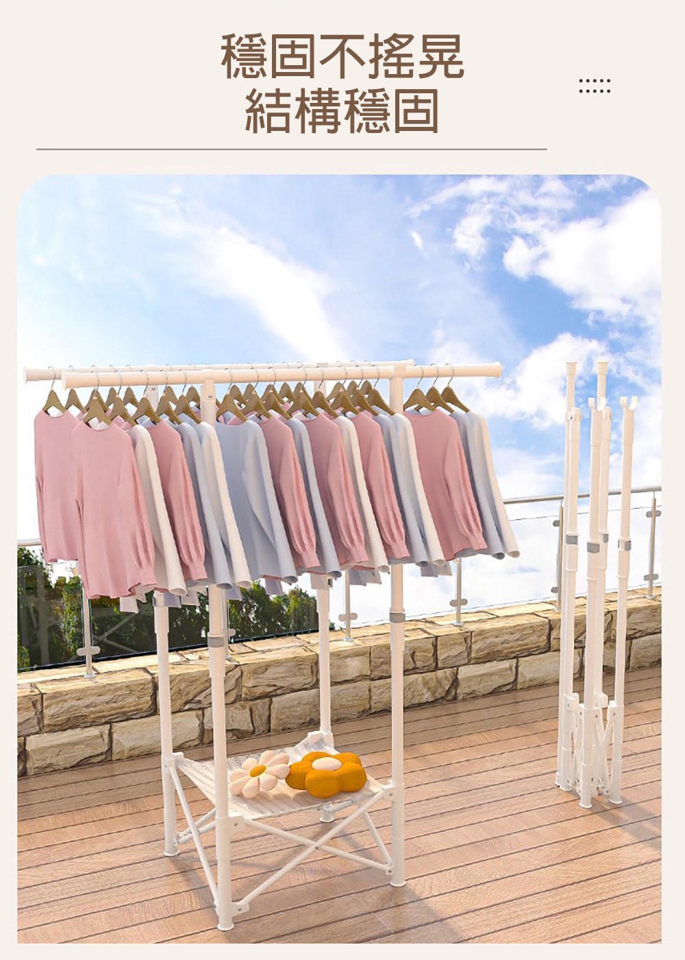 晴天媽咪 不鏽鋼多功能三桿伸縮曬衣架(附滾輪)