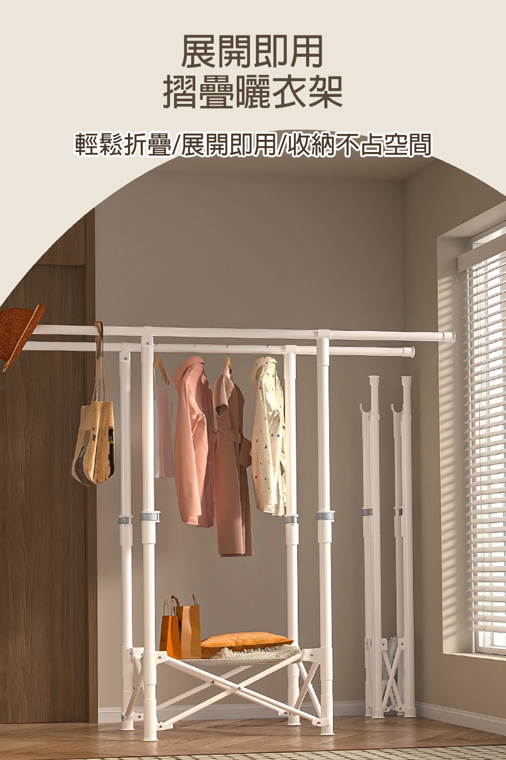 【雙手萬能】日式熱銷百變不鏽鋼四桿活動曬衣架(晾曬/收納/大容量/居家)