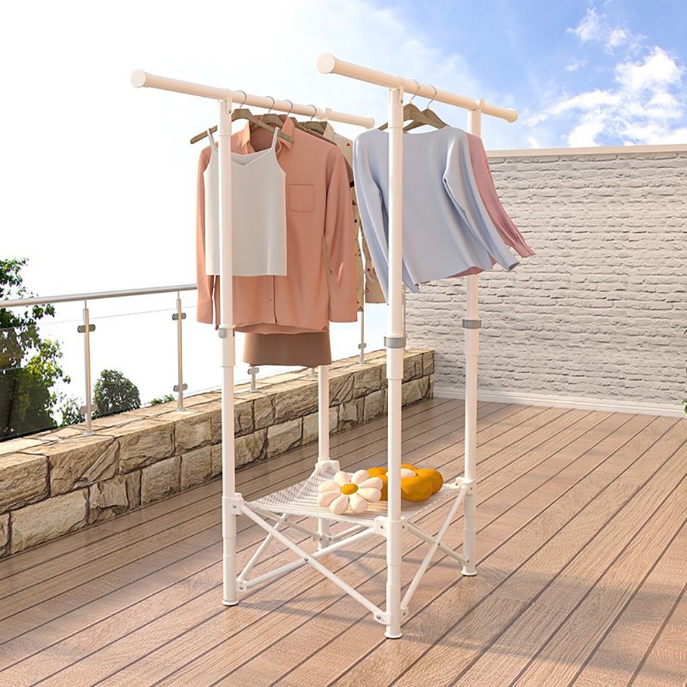 STYLE 格調 優惠2入組-MIT馬卡龍雙桿附置物底網雙桿伸縮曬衣架/曬衣桿