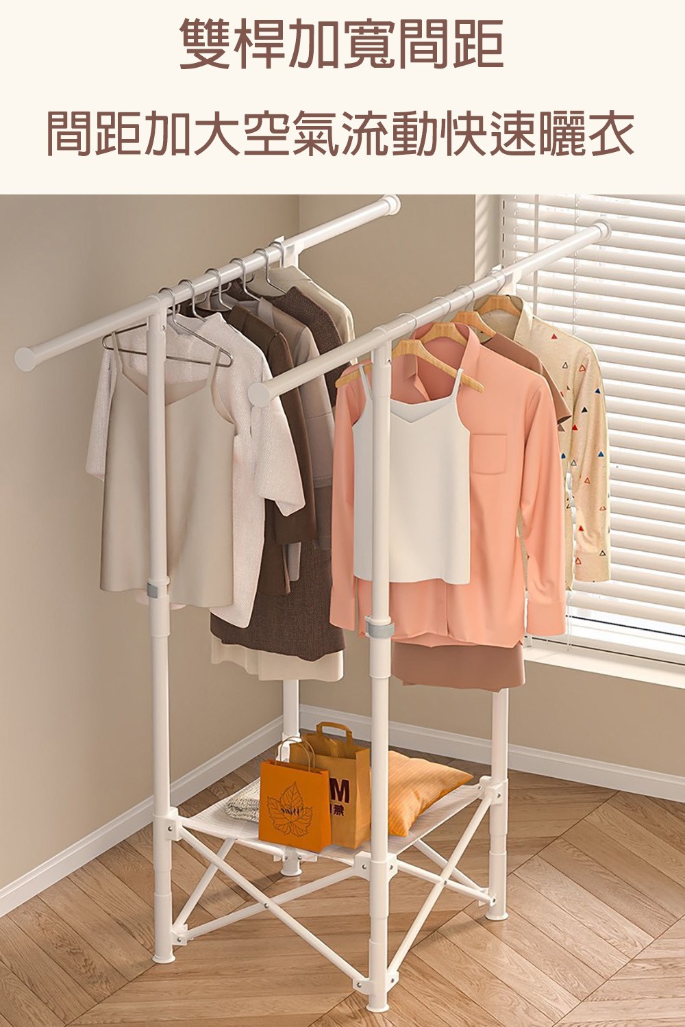 TZUMii赫那掛網衣帽架 掛衣架 吊衣架 收納衣架 雙桿掛衣架-白色
