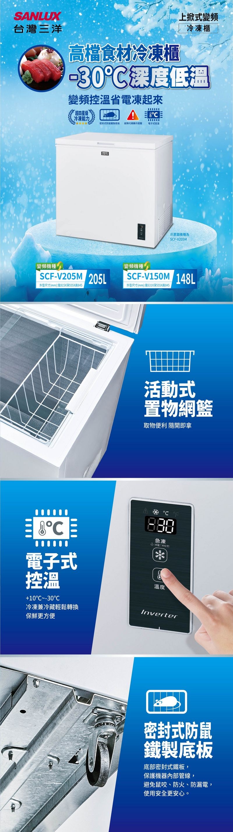 SANLUX台灣三洋148公升上掀式變頻冷凍櫃 SCF-V150M~含拆箱定位+舊機回收
