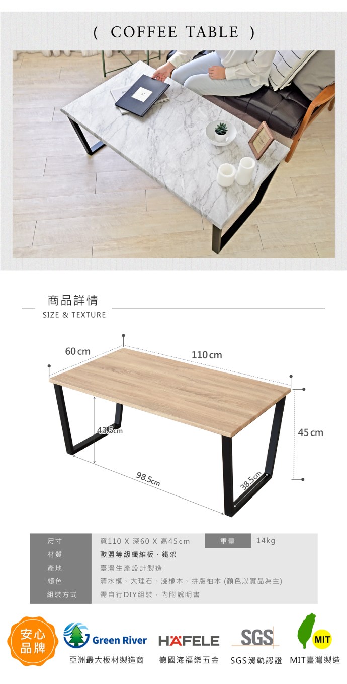 特力屋 雅各雙抽茶几