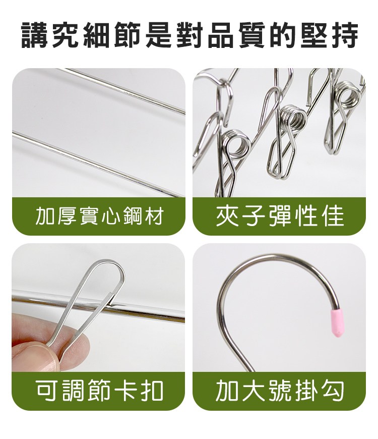 生活采家台灣製304不鏽鋼8字型寬版附夾曬衣架5入裝