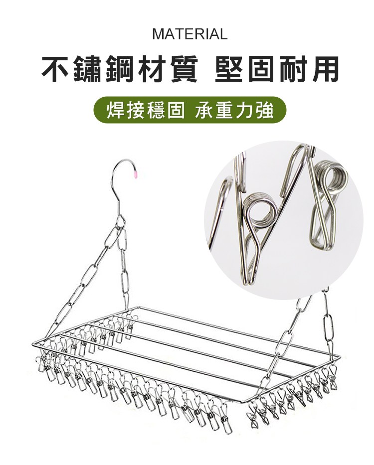 小麥購物 不鏽鋼曬衣架 方形款曬衣夾 C016 150g 2個 顏色隨機 37 x 30 x 29cm