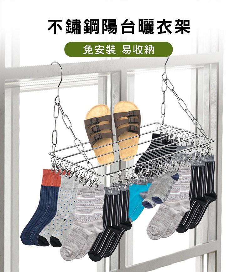 多功能不銹鋼陽臺晾曬架窗臺多夾子襪架晾衣架防盜窗曬鞋掛架