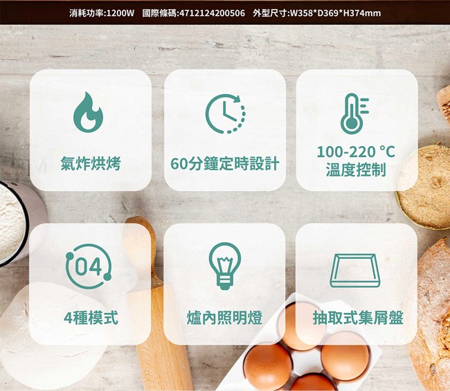 JINKON 晶工 雙溫控旋風烤箱 JK-7450