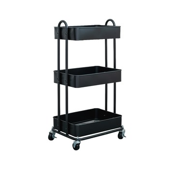 上手家居 極簡3層推車/推車置物架/置物籃推車 黑色 3層