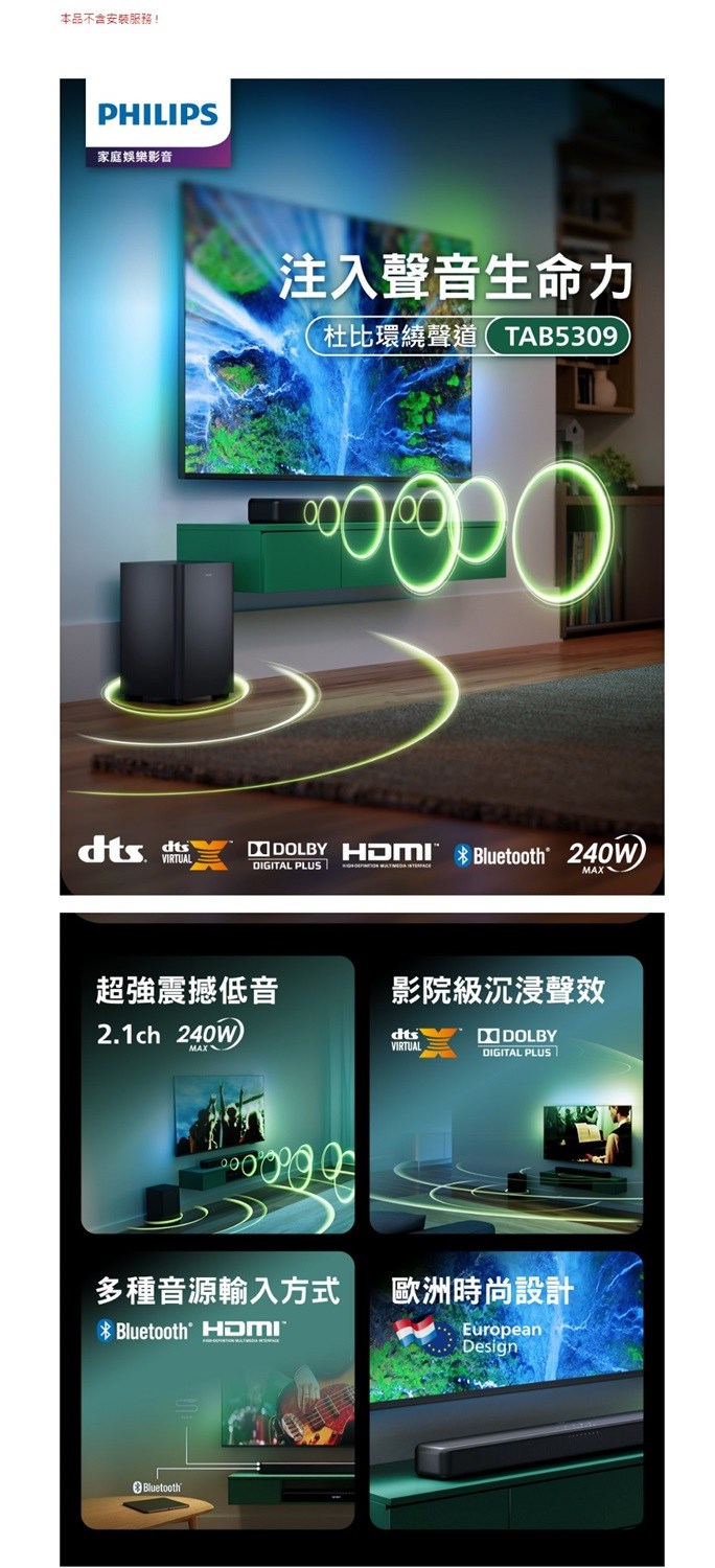 Philips 飛利浦 2.1聲道藍牙家庭劇院聲霸 TAB5309