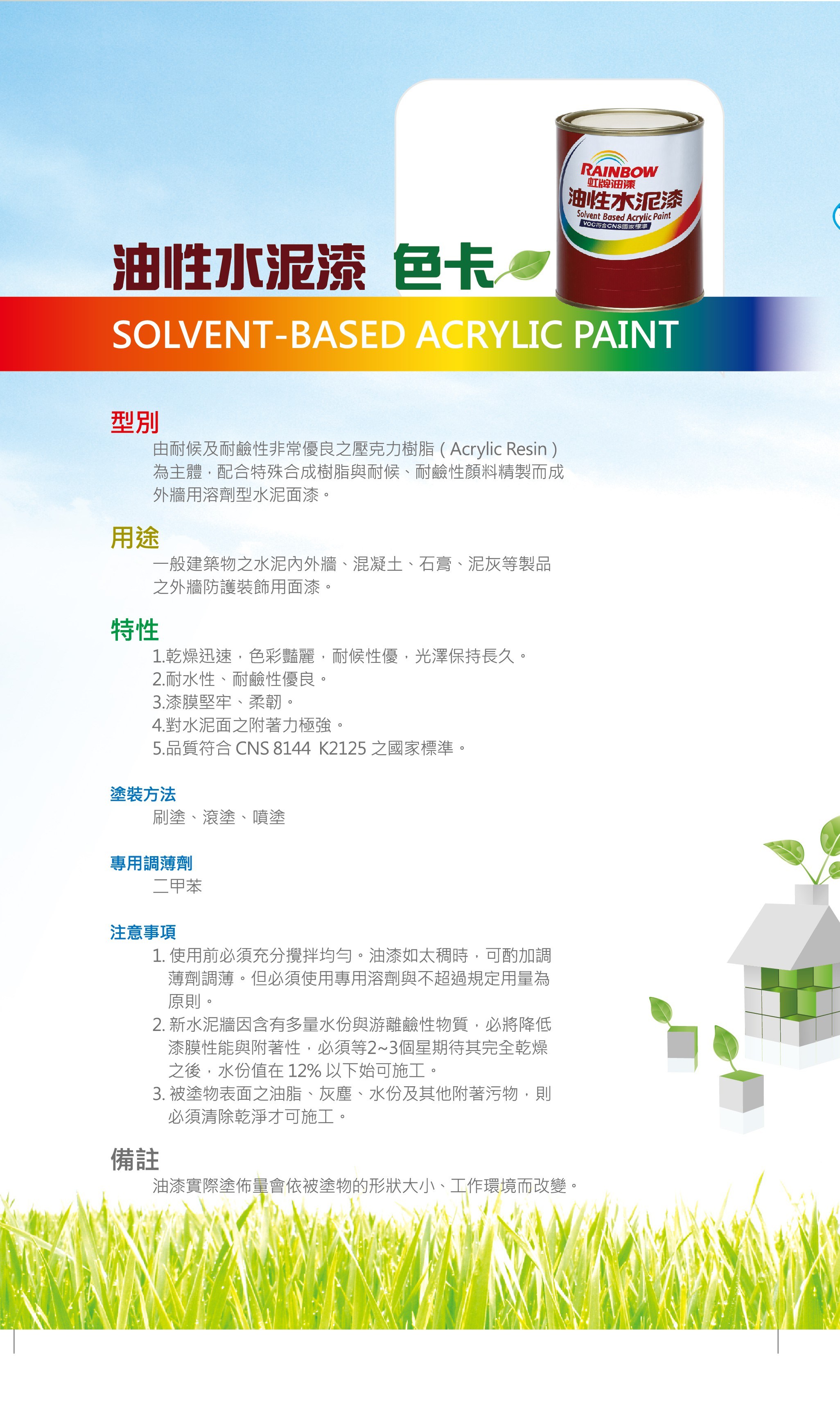 【Rainbow_虹牌油漆】油性水泥漆 有光(1加侖裝)#688嫩綠688嫩綠