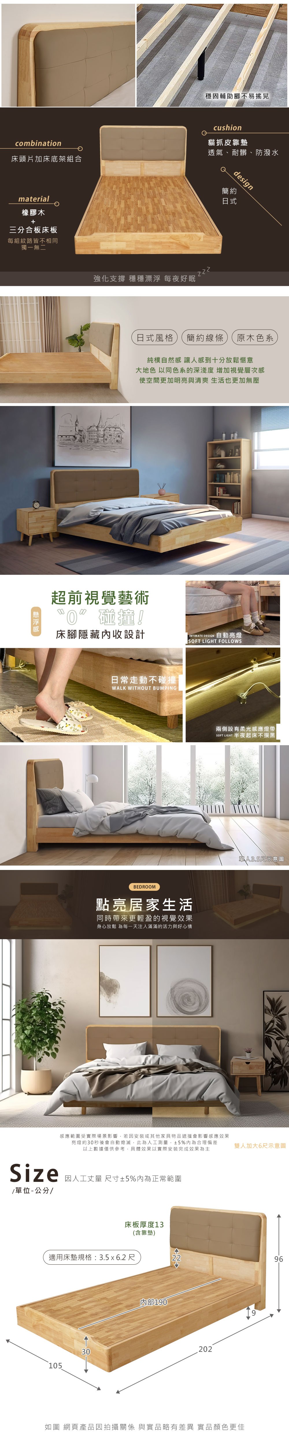 點我下載Homelike 喜家居單人3.5尺懸浮感應燈實木床架組(附床板)(2421)