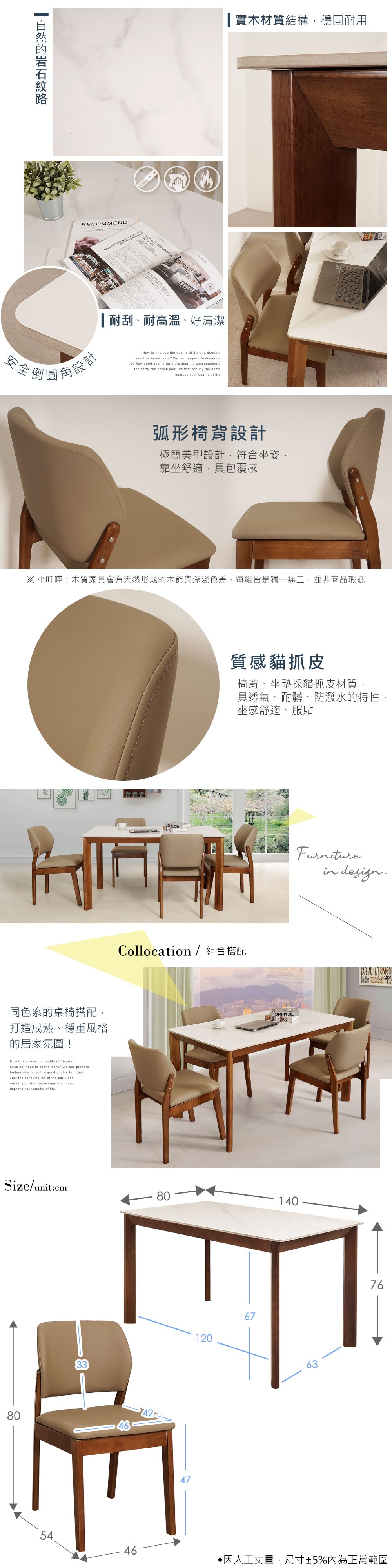 點我下載Homelike 喜家居白岩板胡桃餐桌椅組(一桌四椅)(2316-33)
