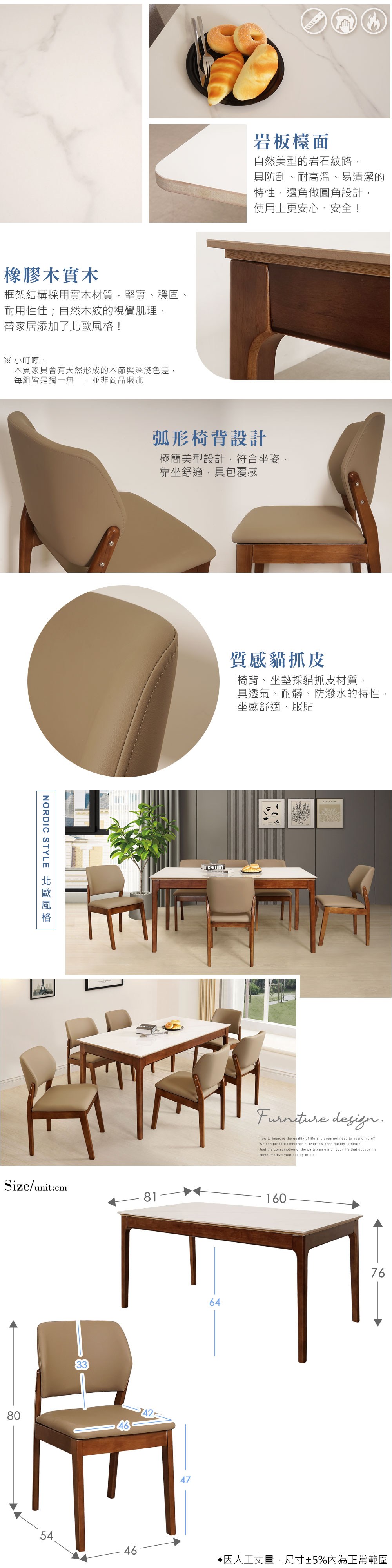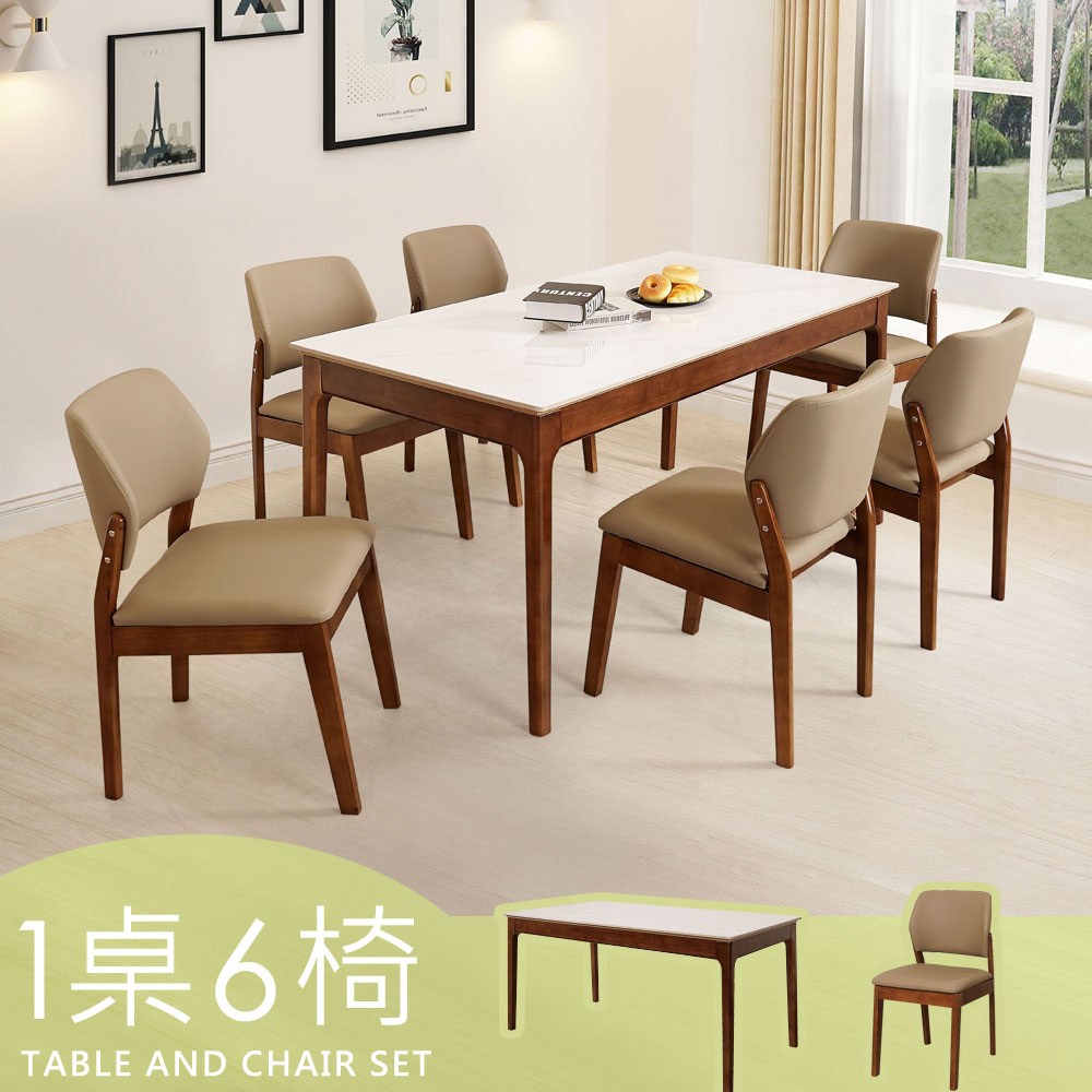 Homelike 喜家居岩板餐桌椅組(一桌六椅)-胡桃色(2420-33)
