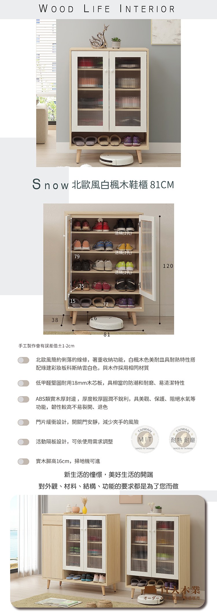 直人木業-SNOW北歐風白楓木鞋櫃81公分