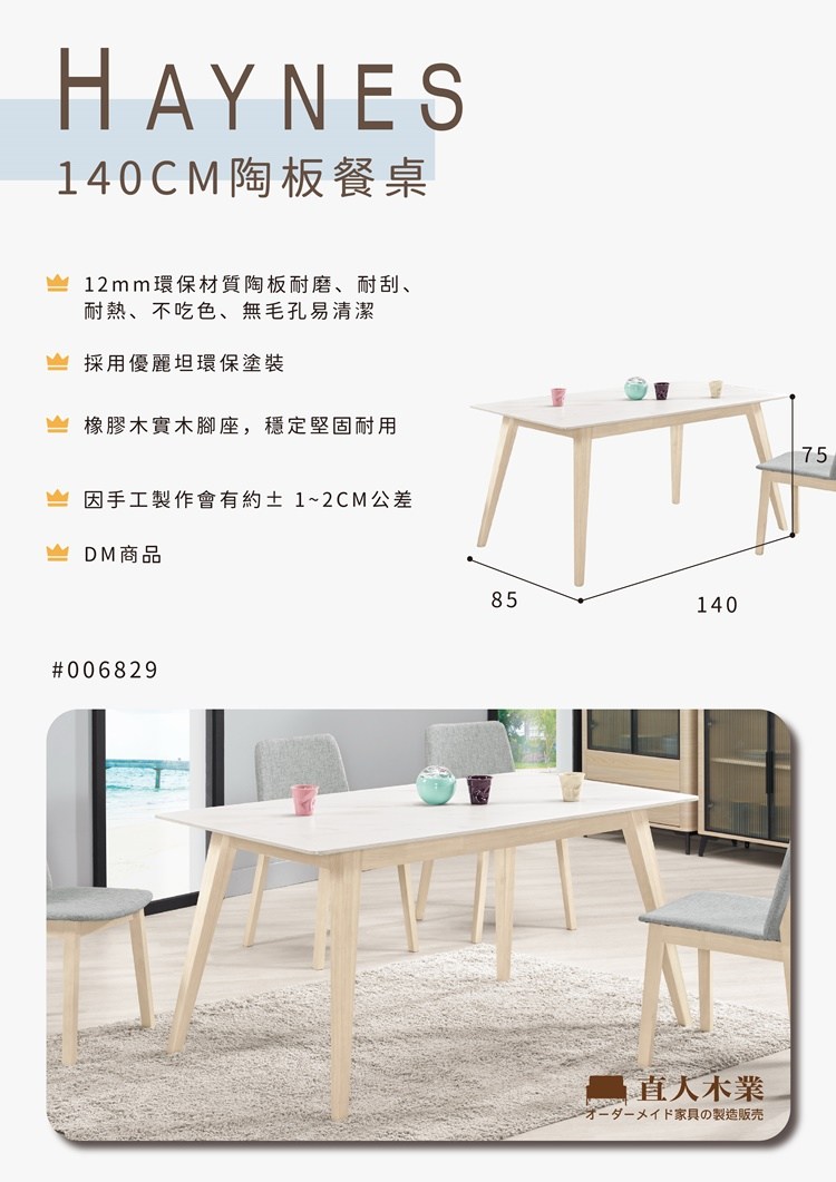 【IDEA】奶油侘寂風白蠟木啞光岩板餐桌/工作桌/飯桌/會議桌/休閒桌(120CM)
