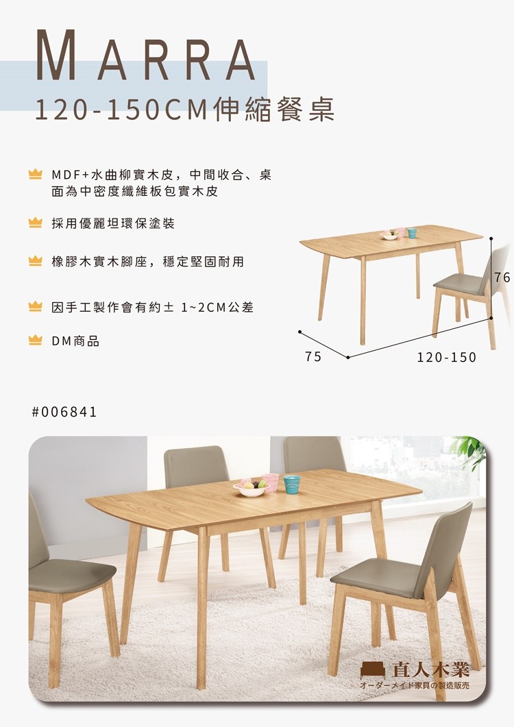 直人木業-MARRA伸縮餐桌120-150公分